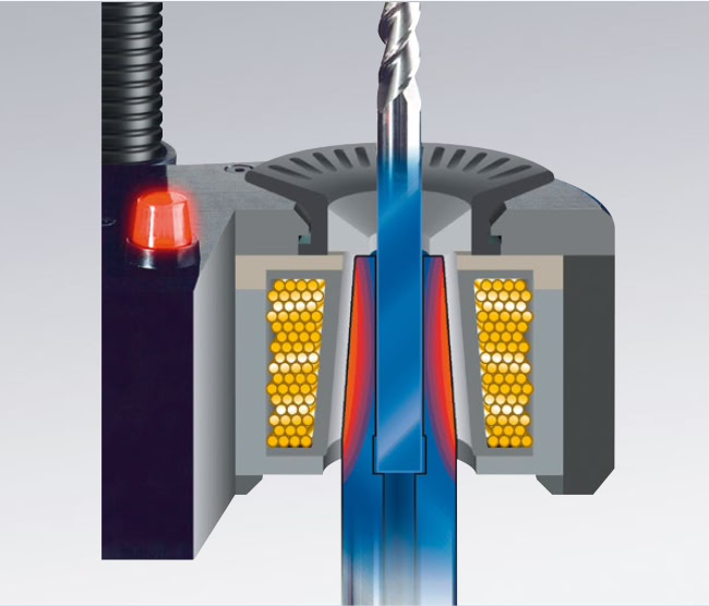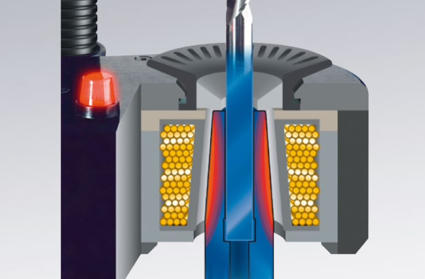 Mechanical clamping of tools has been around ever since man first strapped a rock, to the end of a stick! Thankfully things have moved on, just a little, since then! Grip, as they say, is everything in the tool holding business, or is it? Well its 50% of the story at least! Whatever the situation, a firm grip on the tool is an absolute must, if the tool is to have any chance of delivering, the promised performance you paid for. The tighter the better, is the key, but there is tight, and there is tight! An old engineering term still used quite often goes like this! “Do it as tight as you can, then give it another half turn”. Sounds impossible doesn’t it? Using the laws of physics, primarily those of expansion, we can give it that seemingly impossible extra half turn. If we take a tool holder and apply heat to the section that holds the tool, it will expand. If we then insert the tool while the holder is still hot it will slide in easily. If we then cool the holder it will shrink back onto the tool. The grip that is applied will be far tighter than anything you could apply by almost any other method. So that’s 50% of the story
